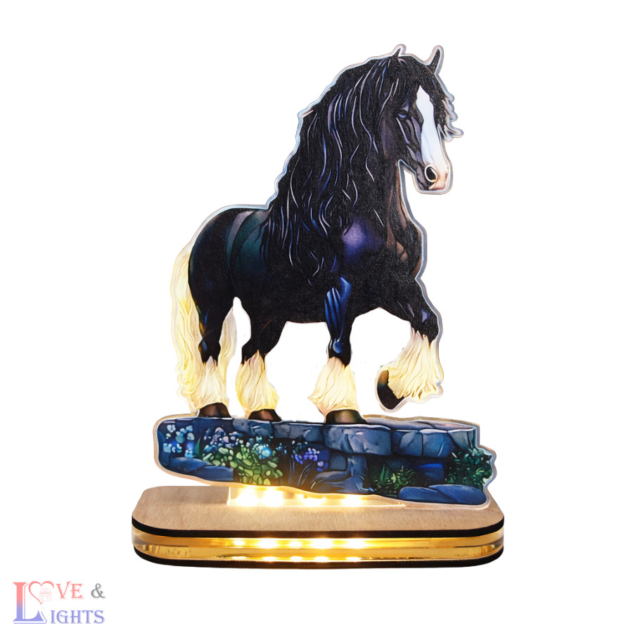 A fekete ló mintás színes LED lámpa elegáns és karakteres megjelenésével azonnal magára vonja a figyelmet. A nemes, erőt sugárzó ló minta és a színes LED világítás különleges hangulatot teremt, így a lámpa egyszerre használható éjjeli fényként és látványos dekorációként.